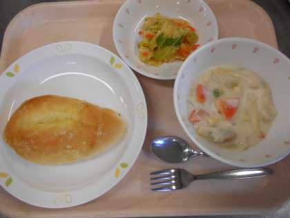 ガーリックフランス マカロニのクリーム煮 イタリアンサラダ 牛乳