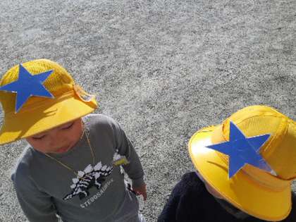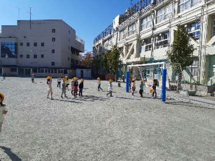 1年1組は学級会で計画したヒーロー鬼ごっこという遊びを全員で行いました。ルールはドロケイのルールを採用し、鬼はヒーローの印であるスターを帽子に付けます。このような発想がなじみの深い鬼ごっこをより新鮮なものにしていました。ヒーローとなった子どもたちはとても嬉しそうです。この遊びの目的は、みんなが笑顔で遊んでもっと仲良くなることです。ヒーローの登場でみんながニコニコの時間となりました。