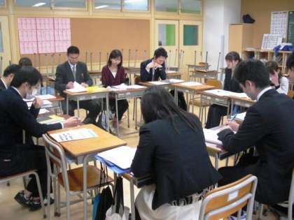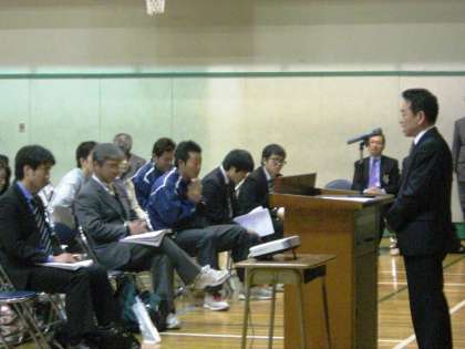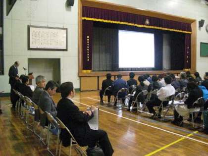 平成24年度、第1回目の学び舎合同研修会を実施しました。砧中学校に、砧小・山野小・明正小、4校の先生方が集まりました。今回は、年度も変わり、教職員の入れ替わりがあったので、まず、顔合わせが第一でした。合同研修会は、教育委員会指導主事栗林先生より9年教育に関しての説明、その後、今年度の学び舎の取り組み方針について確認をしました。その後、分科会に分かれ、昨年度からの課題の確認と6月の授業研究会に向けての話をもちました。