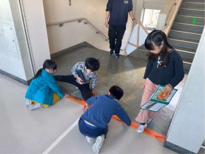 2年生が算数で「長さ」の学習をしています。これまで学習した「cm」をもとにさらに長い長さについて調べながら身に付けています。