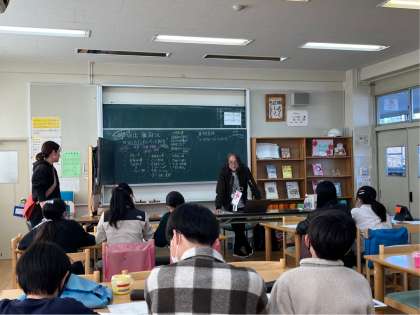 6年生は総合的な学習の時間に、ゲストティーチャーからお話を聞き、自分の将来を考える活動をしています。様々な職種の方が来校くださり、貴重なお話をしていただいています。今回は音楽関係ということで、明正小の学校支援コーディネーターの方においでいただきました。作曲のやりがいや大変さ、たくさんのお客さんの前で演奏した思いなど、想像もできないようなお話が聞けました。お話を聞いた子のリクエストで、お昼の校内放送にも出演していただきました。