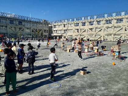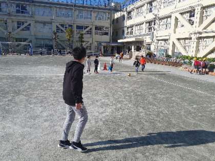 今日は運動委員会主催のスポーツフェスティバルを昼休みの校庭を使って実施しました。対象は2年生の全児童です。校庭に綱引き、玉入れ、的当て、キックベースボールのコーナーを作り、それぞれの場所で運動委員会の児童が安全管理を含めて2年生にいろいろな運動に親しませていました。今日は保護者会があるため5年生は給食後、下校となりました。そのため運動委員会の6年生だけでは人手が足りないため、委員会以外の6年生児童がヘルプ役でお手伝いをしてくれていました。委員会は違っても学校をよりよくしたいという思いは同じです。