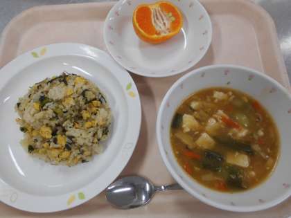 青菜とじゃこのチャーハン マーボー汁 はやか 牛乳