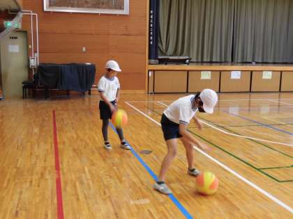 紹介タイムでは上手にできた人にお手本を見せてもらい、こつを説明してもらいました。残りの時間で好きな技を練習しましたが、お手本を見せてくれた友達に教えてもらう姿も見られました。