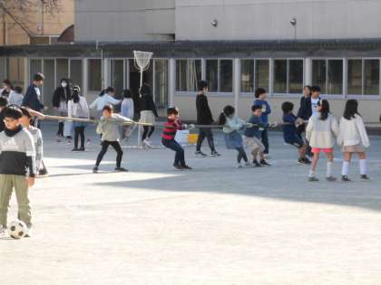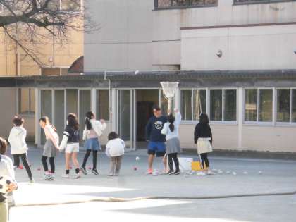 今日のお昼休みに運動委員会主催のスポーツフェスティバルが4年生を対象として開催されました。運動委員会の児童が校庭に綱引き、玉入れ、的当て、キックベースボールのコーナーを準備しました。どのコーナーも大変盛り上がり、4年生も笑顔いっぱいで思いっきり楽しむことができました。お昼休みもあっという間に過ぎてしまったようで、「まだやりたかったー」という声もたくさん聞こえました。運動委員会の児童は準備、実施、片付けまでとてもテキパキと協力し、盛り上げ、一緒に楽しみながらも、ケガのないように見守る姿が見られました。