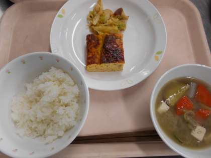 ごはん 千草焼き キャベツとちくわのおかか和え 根菜汁 牛乳