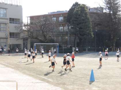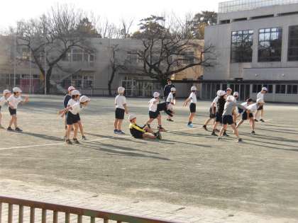 今日の3年生の体育では校庭で走りこみを行いました。先生の合図でスタート、ストップを繰り返し、息を切らしながら、休む間もなく次々と走りました。走りながらバトンパスの練習も繰り返し行いました。1時間目のまだとても寒い時間の体育でしたが、笑顔があふれ、体を動かす楽しさや心地よさを味わうことができました。体もポカポカになりました。