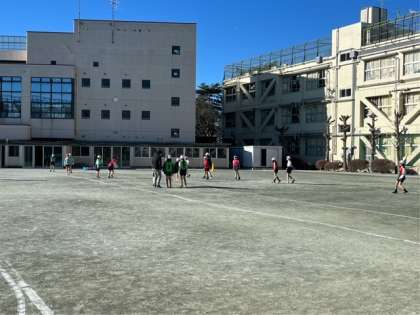 寒い朝です。ニュースでは、今期一番の冷え込みと報道しています。正門の岩石庭園には、薄い氷が張っていました。寒くても子どもたちは元気に過ごしています。ひまわり学級のムキムキタイムでは、持久走に取り組んでいました。4年生はサッカーでたくさん身体を動かしていました。