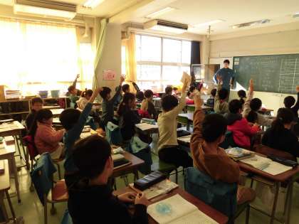 3年生の理科では「磁石のひみつ」について学習しています。今日は「磁石に引き付けられるものはどのようなものなのか」をめあてに、まずは教室にある黒板、クリップ、鉛筆、水筒、ノートなど、いろいろな物の素材と磁石に引き付けられるかどうか予想をたててから、実際に実験しました。その結果を、ノートにきれいに作表し、まとめることができました。磁石に付く物と付かない物を判別でき、どんな素材のものが付くのかを金属の中でも付くものと付かないものがあることを学習することができました。磁石にとても興味を持ち、積極的に手を挙げて発言する様子がみられ、楽しみながら学習することができました。