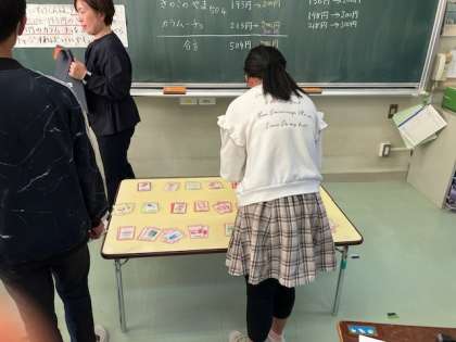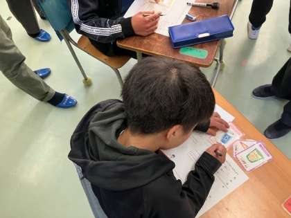ひまわり学級は、世田谷区の研究会の研究日のため研究授業を行いました。算数の「概数」の学習です。キャッシュレス決済が普及している最近の状況をふまえ、学級の教員で考えた「ひまPAY」にいくらチャージをすれば、買いたい物が買えるかを考えました。単純な四捨五入ではチャージ額が足りなくなることもあることを押さえ、そうならないためには買いたい物の代金を切り上げた金額をチャージすることが必要であることを一般化しました。その点に注意しながら、学級の教員が用意したたくさんの紙製のお菓子商品の中から好きな物を選び、それを買うための金額をひまPAYに書き入れてチャージし、買い物の疑似体験をしました。楽しく、生活に役立つ学習をしました。