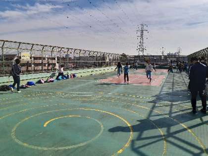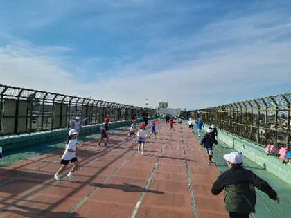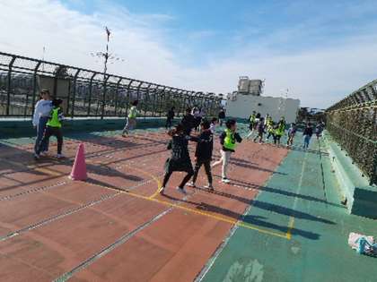 縦割り班活動、屋上の様子です。気温が高いからか、汗をかいている子もいました。