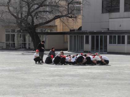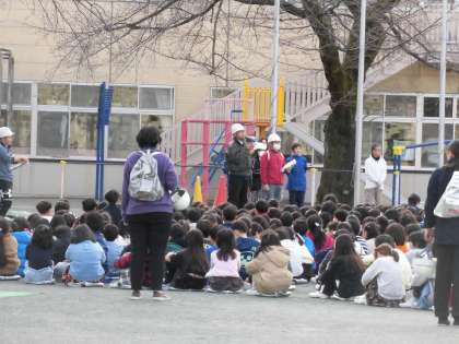 今日、避難訓練が行われました。今回は大きな地震が発生したことを想定して、事前連絡なしで行いました。突然のサイレンにびっくりした子もいるかもしれませんが、すぐに落ち着いて、校庭にいる子は校庭の中心に腰を低くするなど、指示に従って行動することができました。避難の際は「おかしも」を守り、(おさない・かけない・しやべらない・もたない)5分ちょっとで全員が校庭に避難することができました。年明けに大きな地震もあり、気も引き締まった避難訓練ができました。「いのちを守る」行動についてひとりひとりが考えることができました。
