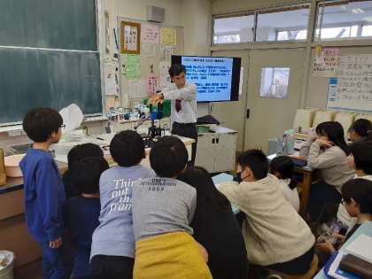 4年生の総合的な学習の時間では、リサイクルチームが外部講師のお話や体験の機会を得て、学習を進めました。一般財団法人のプラスチック循環利用協会の皆様をお招きしました。リサイクルという言葉は知っていても、実際にどのようにしてリサイクルしているのかを知る機会はこれまでありませんでした。今日はプラスチック、例えばペットボトルキャップがどのようにして循環利用されているのかを映像や体験通して知ることができました。ペットボトルの部分とキャップの部分は水に浮くか浮かないかで分別されたり、プラスチックを250℃の熱で溶かし、循環利用のための素材に作り替えたりする様子を目の前で実演していただきました。そのような努力でリサイクルが進んでいることを知り、リサイクルの必要性や物を使う責任を実感することができました。