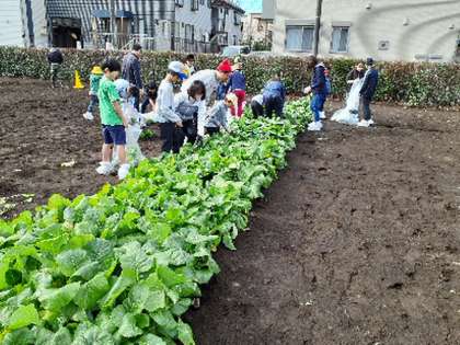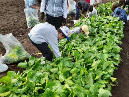 秋山農園の小松菜は大きい!そして、収穫量が多かったです。収穫した小松菜を工夫しながらビニールにたくさん入れました。