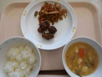 ごはん くじらの立田あげ きんぴら煮 豆腐とわかめのみそ汁 牛乳