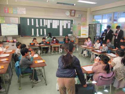 2年5組では「4年5組におかえしの交りゅう会をしよう」を議題に学級会を開きました。校内研究として全教員が参観し、講師の先生にもおいでいただきました。子どもたちは少し緊張した様子でしたが、会の内容を一人一人が提案しました。自分の意見には「〜だからです。」と理由も伝えていました。友達からの意見を聞き、黒板に張られた会の内容を見比べて、どの内容がよりふさわしいか、意見を交わし、名前マグネットを使ってみんなの意見を確かめながら、決めることができました。講師の先生からも一人一人が意見をしっかり伝えていて、友達の意見も考えながらよりよい方向を探ることができているとお話しいただきました。子どもたちがこれからも自分の意見をもち、伸び伸び表現し、よりよい学校生活をつくっていけるよう支援していきたいと思います。