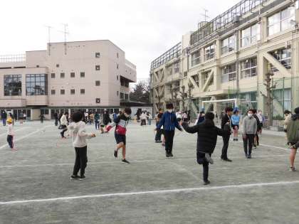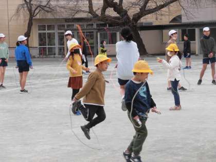 1年生も上手に跳んでいて、どんどんなわとびカードのチェックが増えていきました。高学年が低学年にお手本を見せながら練習するグループもありました。夢中で跳ぶ様子は、寒さも病気も吹き飛ばしてしまうくらい元気いっぱいでした。