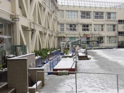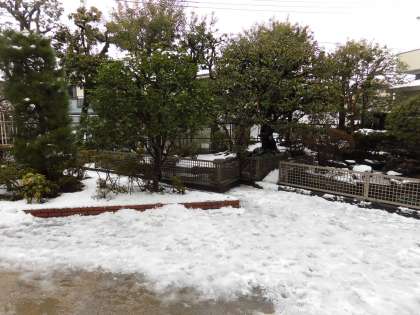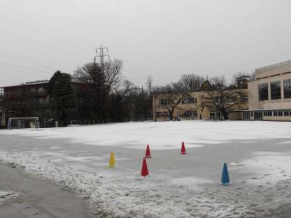 校庭は昨晩の雪で真っ白です。今朝は先生や職員の皆さんの雪かきの力で、子どもたちは大きなケガもなく無事に登校できました。「雪合戦したい!!」という声も聞こえてきましたが、水分を多く含んだシャーベット状の雪のため難しい状況でした。子どもたちは、教室から真っ白になった校庭を見て大喜びしていました。