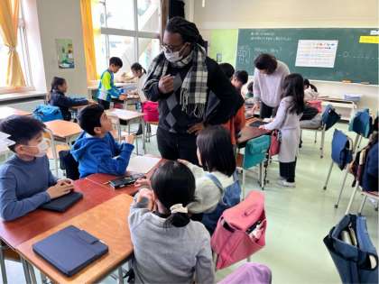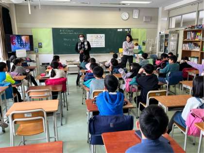 3年生が外国語活動で、相手に伝わるように尋ねたり答えたりする活動をしました。グループで考えたクイズが難しくて驚きました。「hint 1 fruits hint 2 Green」… 漢字で書くと「鰐梨」