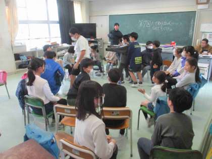 昼休みに縦割り班活動を行いました。5年生がリーダーシップを発揮しています。あたたかく見守っている6年生の様子が印象的でした。1年生から4年生の皆さんもそのような5、6年生の姿を目標にしてほしいと感じました。