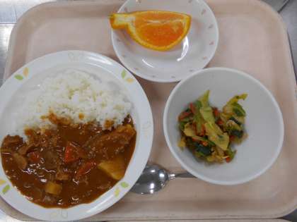 ハッシュドポークライス こまつなサラダ デコポン 牛乳