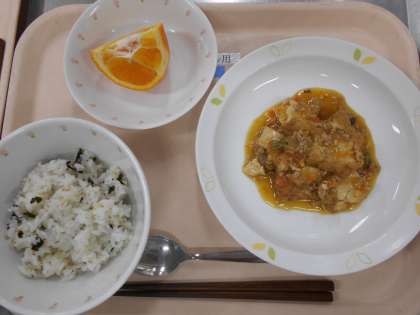 わかめごはん 生揚げのそぼろ煮 いよかん 牛乳
