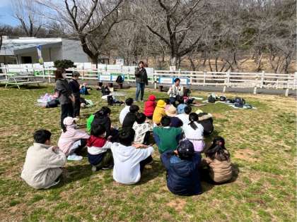 ゴールの「こども遊牧場」に着きました。みんな元気です。日があたって暖かくなってきました。これからお弁当です。