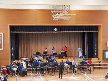 今日は「6年生を送る会」を行いました。1年生から5年生、ひまわり学級からは、6年生に感謝の気持ちを伝える歌、送る言葉、クイズ、ダンスを披露しました。練習の成果を発揮して、とても息の合ったものとなり、6年生も笑顔があふれていました。6年生に感謝の気持ちをしっかりと伝えられたようです。6年生からは、お礼に各クラスから合奏を送りました。どのクラスも、さすが6年生といったみごとな合奏で、会場全体を盛り上げてくれました。司会もとてもしっかりとスムーズに進行し、全員での合唱も、とても素晴らしかったです。最後は、6年生と1年生が手を繋ぎ、花のアーチをくぐって退場しました。とても優しく、微笑ましく感じました。 「6年生、ありがとう!」