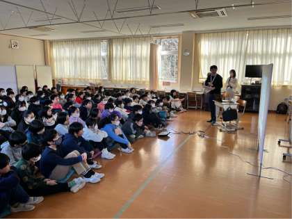 世田谷区では全ての人が共に生きる町についてパンフレットを作成しています。その内容に6年生が、5年生の時の総合的な学習の時間で感じたことや気付いたことが生かされているので、区の職員の方がパンフレットの紹介をしてくれました。4月に区内の4、5年生に配られるそうです。