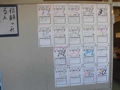 6年生の掲示板では、卒業までのカウントダウンが進んでいます。その横には、将来就きたい職業が力強い筆づかいで書かれています。多くのゲストティーチャーの方を招いてお話を聞き、時間をかけて学びを深めました。それぞれの学年で、1年のしめくくり、次の学年への準備が進んでいます。
