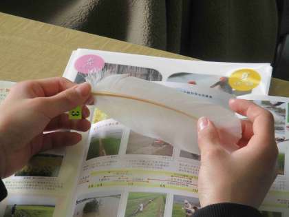 佐渡市役所や佐渡の農家の方が来校くださり、5年生に佐渡の米づくりについてお話をいただきました。農家の方から、「朱鷺と暮らす郷」をつくるために、いろいろな工夫をしていて、「江」という水たまりをつくることで、ドジョウやカエル等の生き物が棲むことができる、それが朱鷺のえさになるそうです。また、冬でも田んぼに水を張っているのも同じ理由だそうです。「生き物のために一工夫」を合言葉に、朱鷺だけではなく、いろいろな生き物を大切にしているそうです。朱鷺の羽根にも触らせてもらいました。