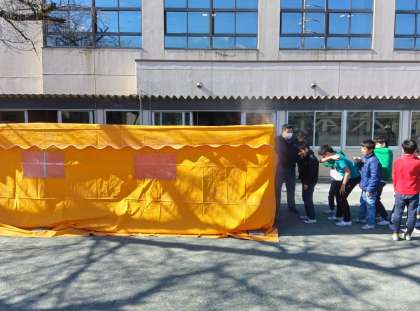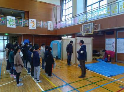 土曜日に地域の皆様で構成されている避難所運営委員会が避難所運営訓練を本校で実施しました。今回は5年生全児童がその訓練に参加させていただきました。避難所には総務情報班、給食物資班、避難所班、救護衛生班があり、それぞれの役割や仕事内容について、話を聞いたり、体験したりしました。5年生は昨日の事前授業をもとに、避難所に来ることになった場合には自分たちも運営する一員であるという自覚や、自分に何ができるかを考える意識をもって真剣に参加しました。3.11を目前に、防災への意識を高める一日となりました。