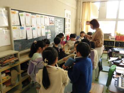 1年生の音楽では「子犬のマーチ」の合奏の練習を行っています。鍵盤ハーモニカ、鉄琴、トライアングル、カスタネット、すず、タンブンリンの楽器をそれぞれの担当にわかれて練習しました。最後には、みんなで合奏しました。子犬の様子を思い浮かべながら、お互いに楽器の音を聞き合い、気持ちを合わせて演奏することができました。とても上手な演奏で、子どもたちも笑顔で楽しんで演奏できたようです。教室には、楽器の音色と、「♪ミドミドミソソ〜 ファレレ〜 ミドド〜...♪」の歌声が響いていました。