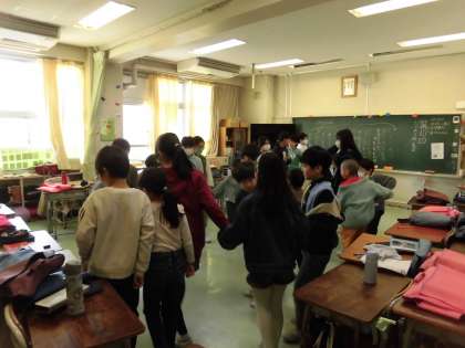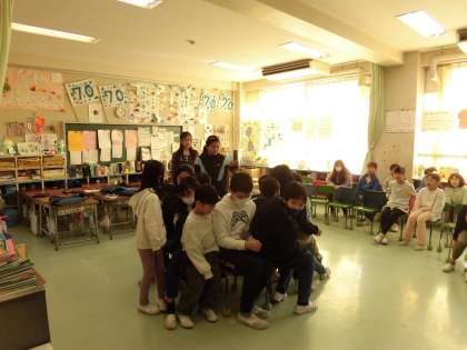 今日は今年度最後の縦割り班活動を行いました。6年生にとっては、6年間で小学校生活最後の縦割り班活動となりました。各班で「なんでもバスケット」「はないちもんめ」「マジカルバナナ」「爆弾ゲーム」「ビンゴ」「いす取りゲーム」「ハンカチおに」などで楽しみました。おにになったら6年生への感謝の気持ちを伝えたり、縦割り班活動での思い出を一言発表したり、各班でとても盛り上がりました。先日、1年生から5年生で心を込めて作った6年生へのメッセージカードも見てもらい、6年生への感謝の気持ちをたくさん伝えることができました。今日は5年生が企画したり、進行したりして活動を進めました。6年生からもしっかりと引継ぎがされていて、どの教室からも大きな笑い声が聞こえ、笑顔あふれるとても楽しい時間を過ごすことができました。6年生にとっても思い出深いものになったようです。