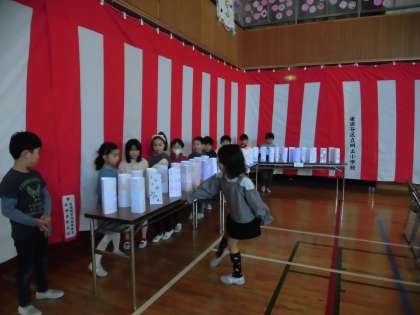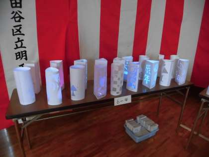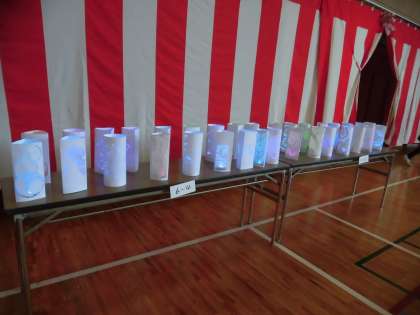 6年生が図工の時間に制作した「紙のランプシェード」を体育館に展示しています。今日、中休みの時間に体育館の電気を消し、カーテンも閉めて、紙のランプシェードのライトアップを行いました。光の通り方を考えて、イラストや模様や文字を切り取り制作しました。ライトアップで、色とりどりの優しい柔らかい光が通り、とても素敵な空間になりました。たまたま体育館にきた1年生からも「わぁ、きれい!」「6年生、すごいねー」と話す声が聞こえました。