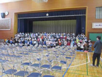 1年生が4月に入学する新1年生のために、歌の練習を始めました。歌は、明正小の校歌と「さんぽ」です。新1年生は、きっと校歌を全く聞いたことがないでしょうね。ぜひ「先輩」として、歌詞がよく分かるようにはっきりと歌ってあげてください。「さんぽ」も1年生の元気いっぱいなところが伝わるといいですね。「先輩」の最初の役割です。がんばってください。