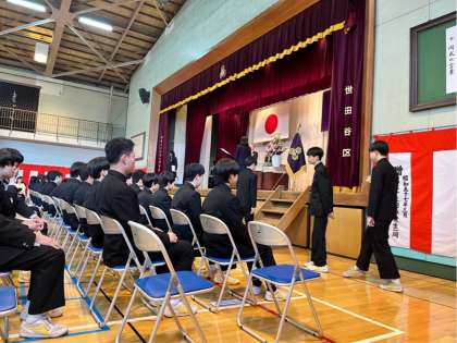 砧中学校の卒業式が行われました。さすが中学生、歩き方や礼儀が立派でした。卒業生合唱も低音、高音が響き合い、感動しました。毎朝、明正小の前を通る度に挨拶をしてくれた卒業生たちもいて胸が熱くなりました。