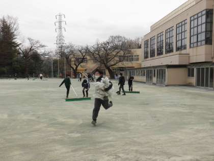 6年生の卒業奉仕活動に一環で、今日は校庭整備を行いました。校庭に砂を撒き、地面の凹凸をならす作業を行いました。大変な作業でしたが、全員で協力し、役割分担してテキパキと作業を進めることができました。毎日のように走り回り、思い出がつまった校庭です。6年間の様々なことを懐かしく思い出しながら、整備してくれたようです。6年生、ありがとう!