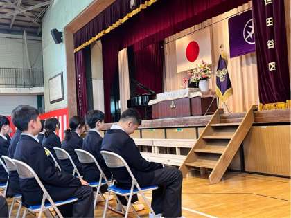 砧中学校で入学式が行われました。先日の卒業式で巣立っていった子どもたちが、標準服を着て立派に臨んでいました。おめでとうございます。また明正小に来て、元気な様子を見せてくださいね。新1年生だけではなく、さらに先輩たちも受付や校歌披露で活躍していました。格好よかったです。