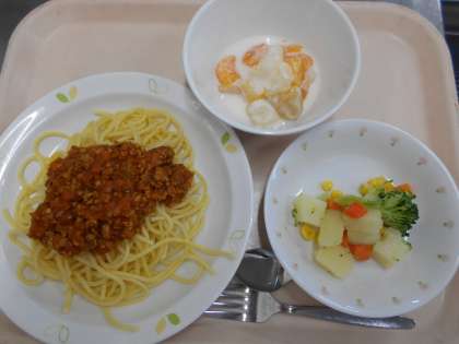 ヘルシーミートソーススパゲティ マセドアンサラダ