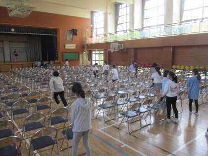6年生だけではなく、5年生も高学年として頑張ってくれています。保護者会のために会場の体育館の準備を手伝ってくれました。次々に椅子を運んだり、きれいに並んでいるか確かめたりと積極的に活動しています。明正小をリードする高学年として楽しみです。