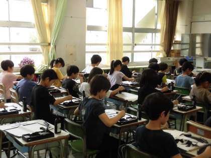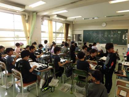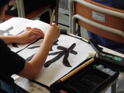 4年生の書写では「林」という字を練習しています。先生から注意点を教えてもらい、「文字の組み立て方」を理解し,字の形を整えて、左右のバランスに注意して書きました。姿勢正しく心を落ち着かせて、一画一画ていねいに筆をはこび、とてもしっかりした字を書くことができました。4年生になって初めての書写、「四は筆で書くのは難しいなぁ」という声も聞こえてきました。