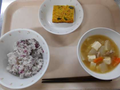 ゆかりごはん 大豆入り卵焼き 豚汁 牛乳