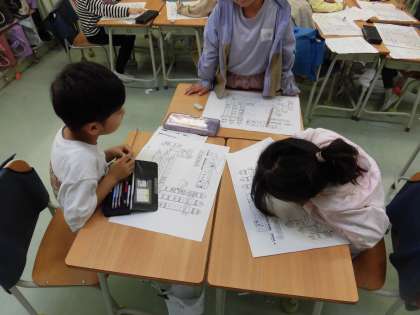 2年生が1年生と学校探検をして、明正小を案内するために、1年生に教えてあげたいことなどを班で話し合い、校内の地図にまとめました。ろうかを走らない、トイレでは遊ばない、ろうかで騒がないなど、教えてあげたい学校のルールもまとめてプリントに記入しました。保健室やミーティングルーム、絵本室や体育館など、校内を案内して、1年生が行ってみたいところや好きなところにも連れて行ってあげたいと、校内地図に必要なことをメモしました。明日の1年生との学校探検の準備もしっかり整ったようです。
