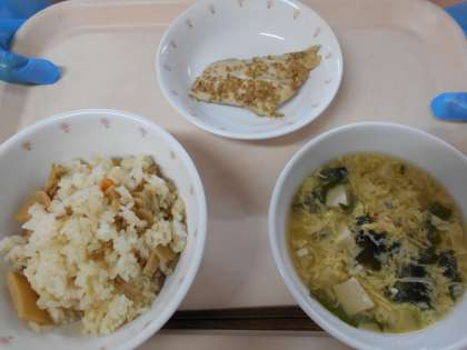 たけのこごはん さわらのごまみそ焼き かきたま汁 牛乳