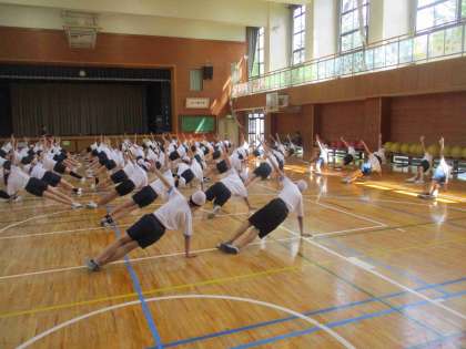 運動会に向けて、高学年の取組も熱が入っています。5年生は、ソーラン節の動きを実行委員の子どもたちが中心になって、休み時間もグループで取り組んでいます。6年生は、すでに動きが揃っていて、音楽に合わせた変化に見応えがあります。どちらの学年もこれからどのように高まっていくのか楽しみです。