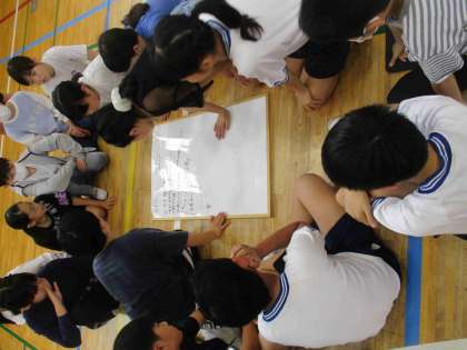 応援団の子どもたちが、朝の練習に取り組んでいます。それぞれの組の応援歌も決まりつつあるようです。組ごとに話し合ったり、動きを練習したりしていました。団長同士も、流れを確認していました。みんな真剣に取り組んでいます。きっと運動会を盛り上げてくれると思います。
