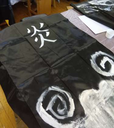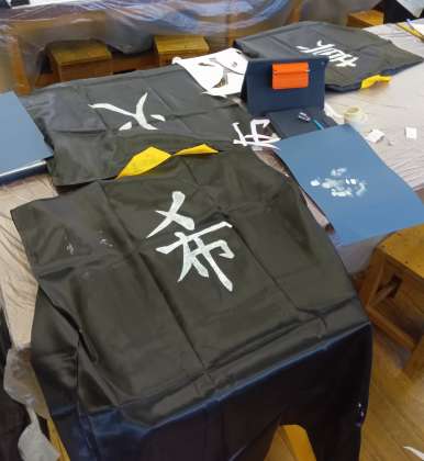 5年生 図工の様子です。運動会で着るハッピの背中の文字を書いていました。思いの詰まった言葉がずらっと並びました。本番がとても楽しみです。