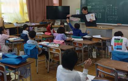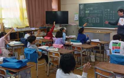 3年生 算数の時間です。わり算の学習をしています。多くの手が挙がりとてもやる気に満ちあふれていました。