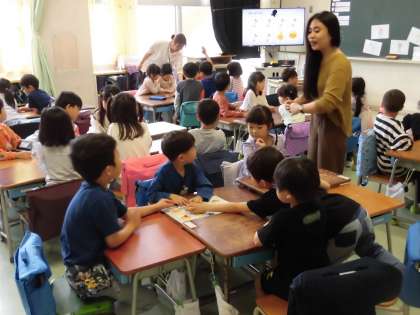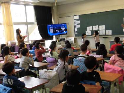 1年生の外国語では、気持ちを表す英語を学びました。「happy(楽しい・嬉しい)」「sad(悲しい)」などの単語を、ゲームを取り入れながら学習しました。子どもたちは集中して、とても楽しく学ぶことができました。英語の歌も元気いっぱいの歌声が、教室に響いていました。